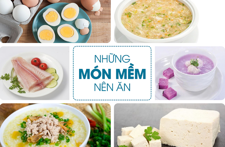 - Trong tuần đầu: tuyệt đối không ăn thịt gà hay bất kỳ loại thịt dai nào. Hãy kiên nhẫn với cháo, súp, sữa, trứng hấp, yaourt.